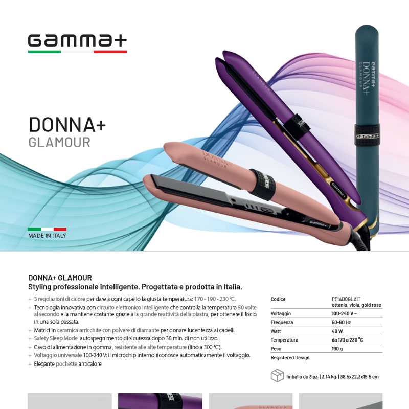 Az Olaszországban gyártott professzionális hajsimító ötvözi a divatot és meghatározza a tendenciát. Donna+ Glamour hajsimító Rose Gold, teal és Violet verzióban azok számára készült, akik nem elégszenek meg a minőséggel, hanem a az exklúzív, egyedi stílust is igénylik.