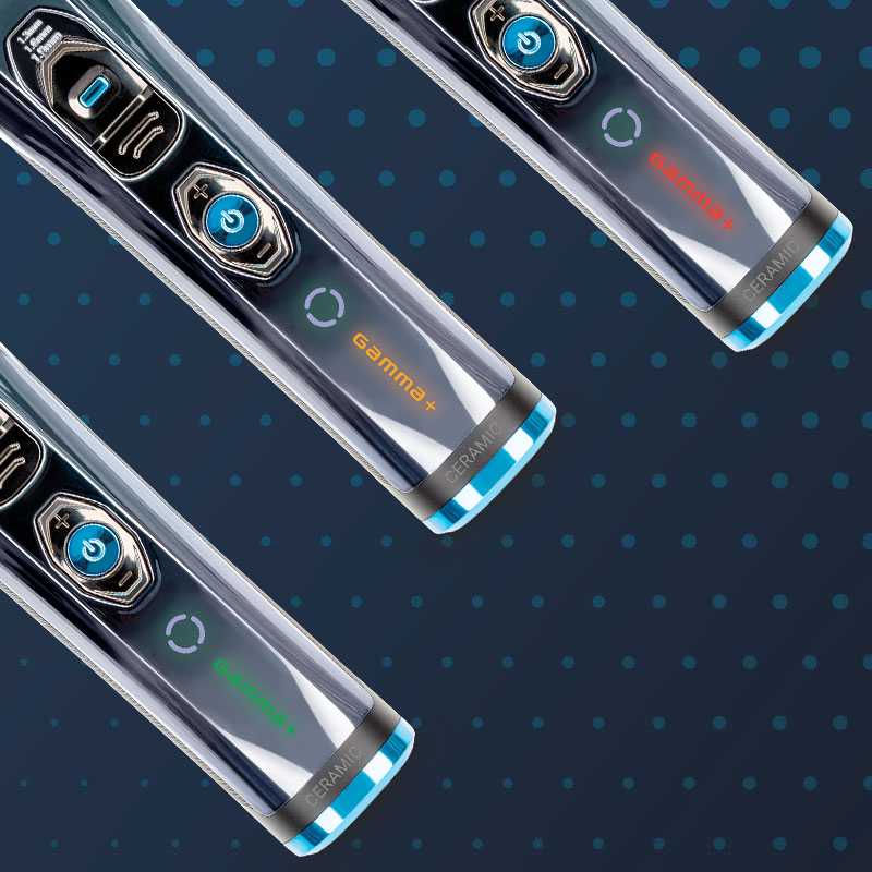 LED kijelző Gamma+ felirattal 3 különböző színben, amely jelzi az akkumulátor töltöttségi szintjét.